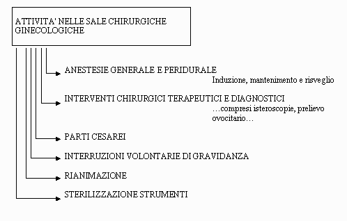 - Visite mediche: sono ovviamente mirate alle indagini proprie del comparto in esame. Si tratta di colloqui, raccolte anamnestiche, consulenze a cui seguono visite ginecologiche, ostetriche, senologiche a seconda della patologia presentata dalla paziente. Nel corso di tale attività è possibile l'impiego di strumenti molto semplici che vengono a contatto con la cute e/o mucose del paziente ( es. speculum ).