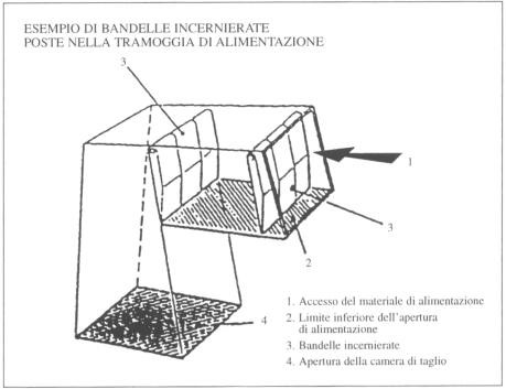 la lama tagliente posta all'interno del vano protetto dai pannelli chiusi e, in caso di loro apertura accidentale, torna in posizione di riposo dove risulta bloccata.