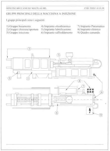 Il processo di iniezione comprende l'approvvigionamento di granulati plastici per aspirazione da contenitori che sono posizionati in testa alle linee produttive, la trasformazione a caldo e l'iniezione su presse che provvedono anche all'estrazione del pezzo stampato. Il prodotto finale imballato ed indirizzato in parte al magazzino per la distribuzione ed in parte diventa oggetto di seconde lavorazioni (etichettatura o accoppiaggio con altri semilavorati,ecc.).